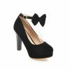 2021 Solid Color Office Low Top Round Toe Women’s Thick Heel High Heel Bow Buckle Red Shoes