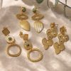 French retro style natural stone long stud earrings vintage women’s earrings plated with 18K gold plated stainless steel exaggerated earrings with a sense of luxury