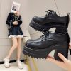 Thick-soled loafers women’s autumn and winter 2022 new solid color single shoes, British style small leather shoes, flatform sole block heel leather shoes